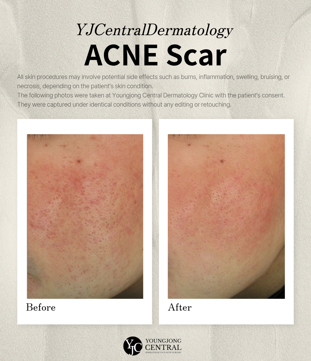 Visible improvements in scar depth and pore size with just one session (Patients staying in Korea for short-term visits)